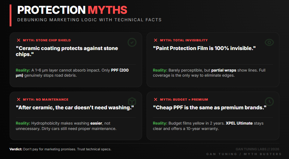 Myth: “Ceramic coating protects against stone chips”