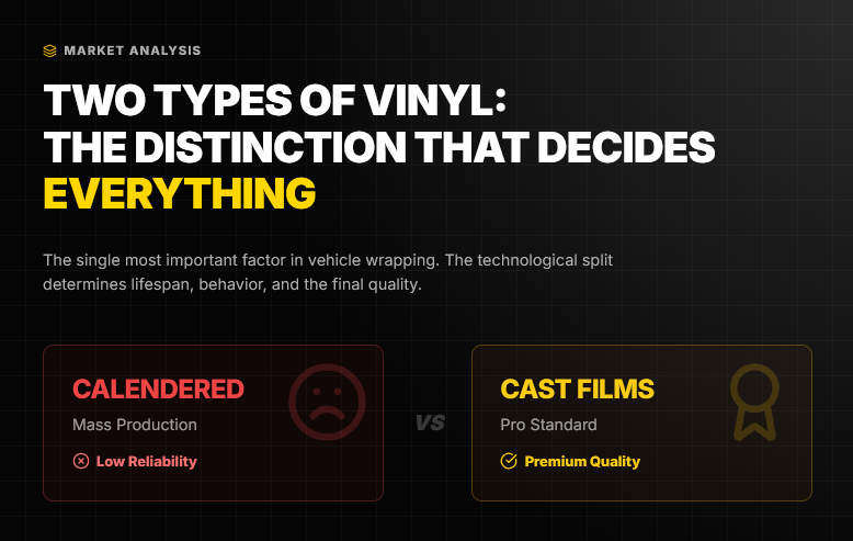 The single most important thing to understand about the vinyl wrap market is the technological split between calendered and cast films. This determines lifespan, how the material behaves on the bodywork, and the quality of the final result.
